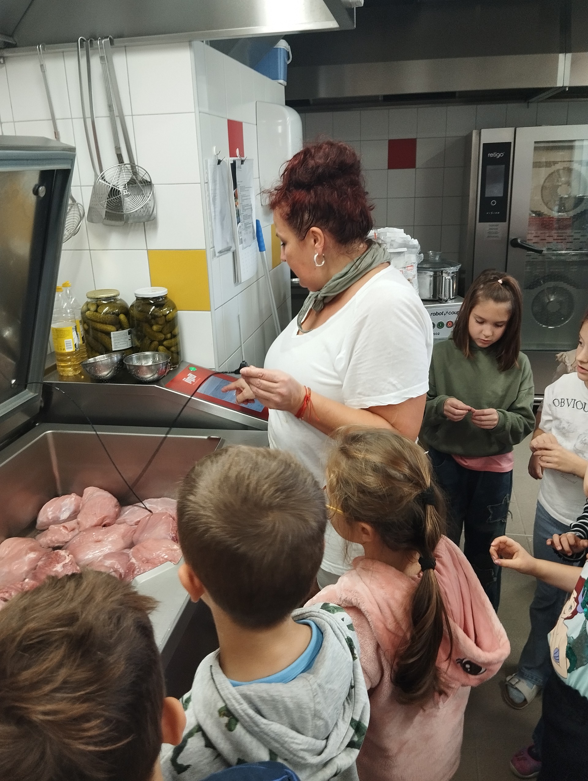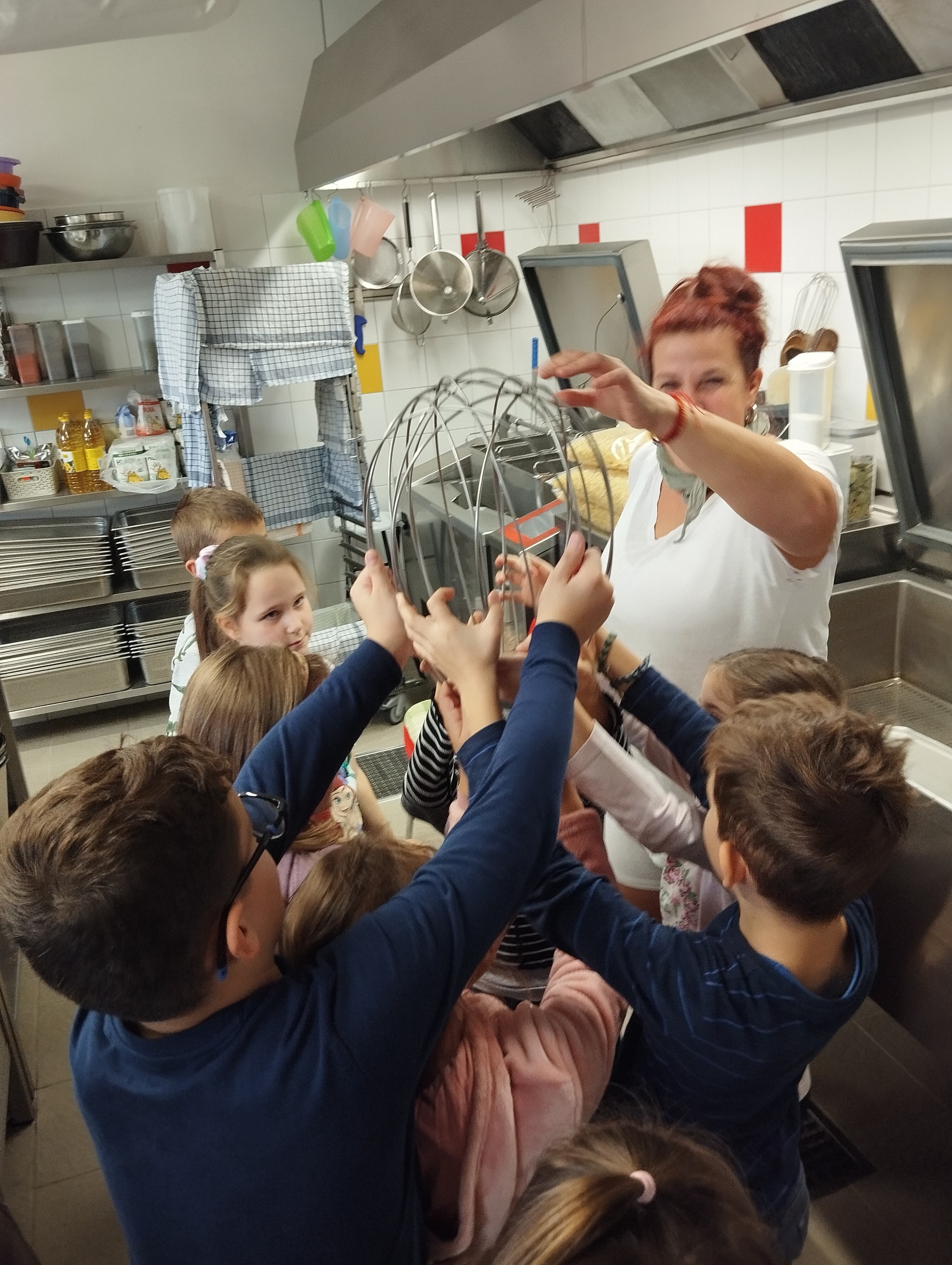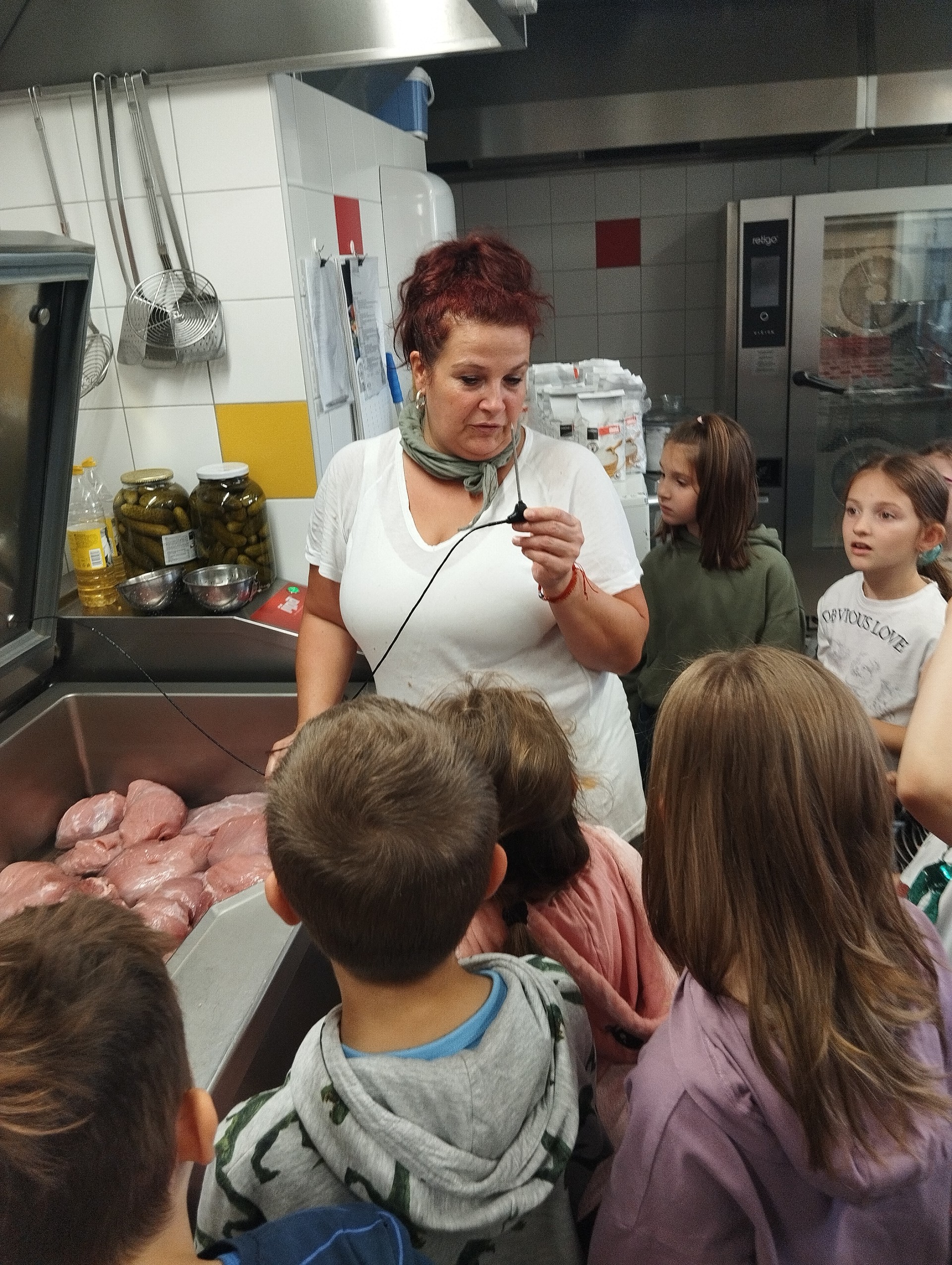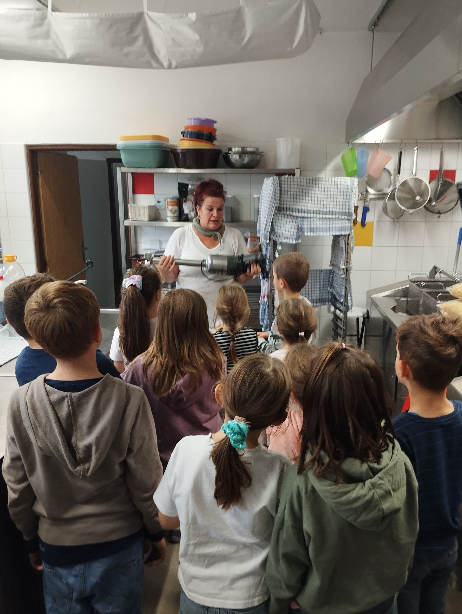 Minulý týden proběhla ukázková hodina školní jídelny a kuchyně za doprovodu paní kuchařky Natálky Kymlové. Děti z druhých tříd navštívily vnitřní  prostory kuchyně, kde mohly vidět nejen vybavení, ale i třeba velká balení jídla (např. těstoviny) nad kterými žasly, či přípravu základu pro Hamburskou smetanovou omáčku, z čehož měly veliký zážitek!