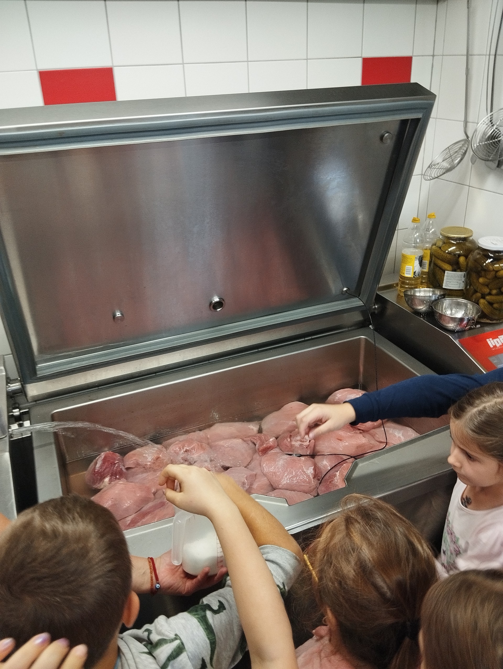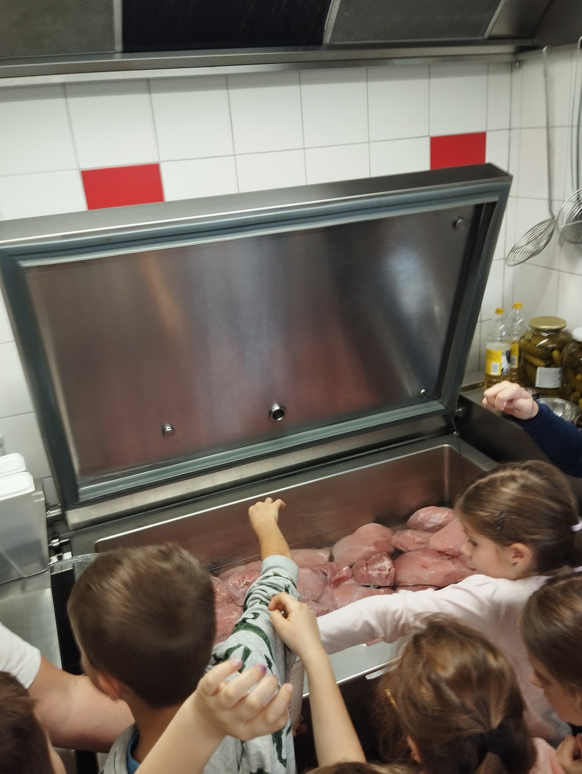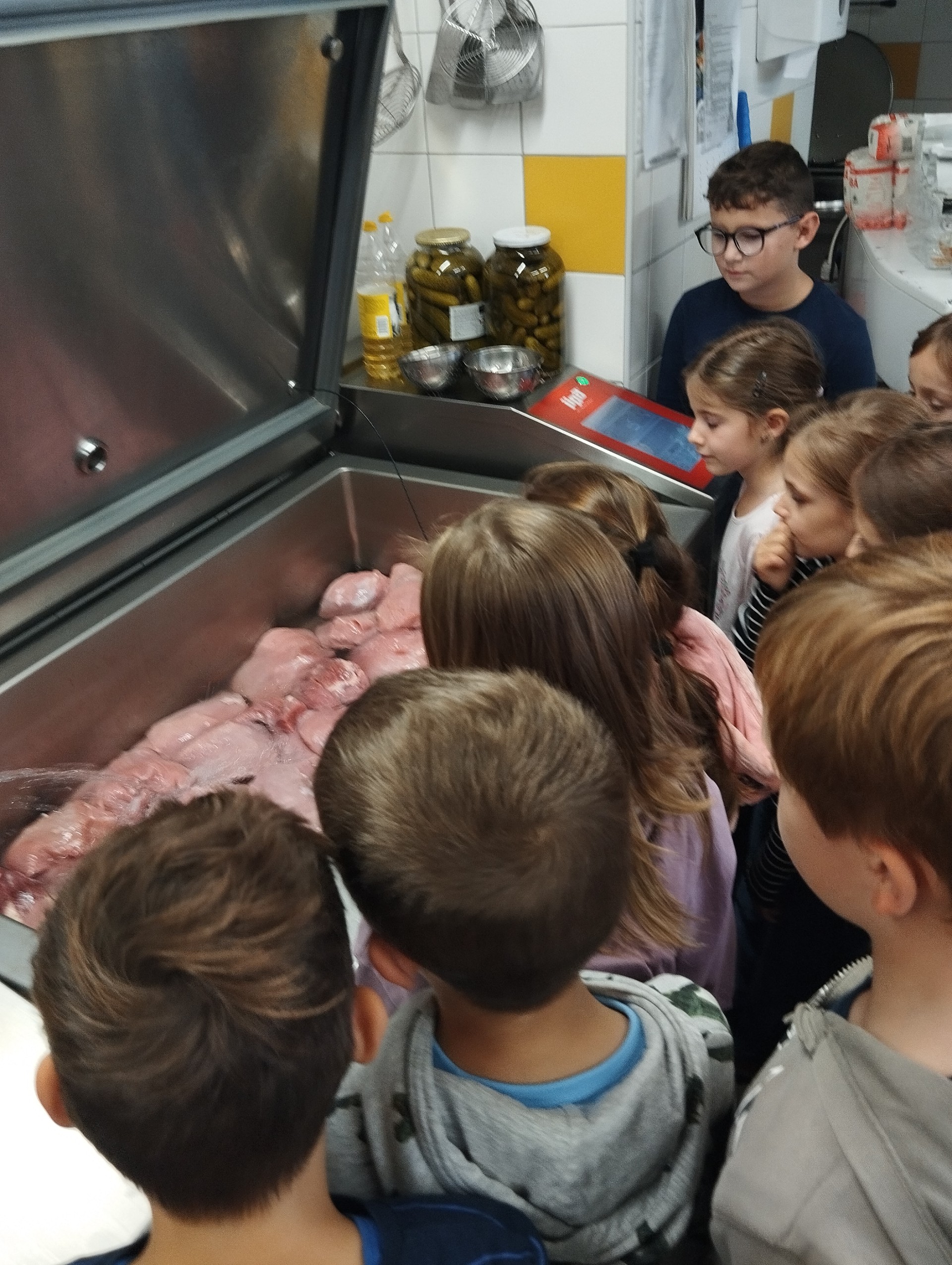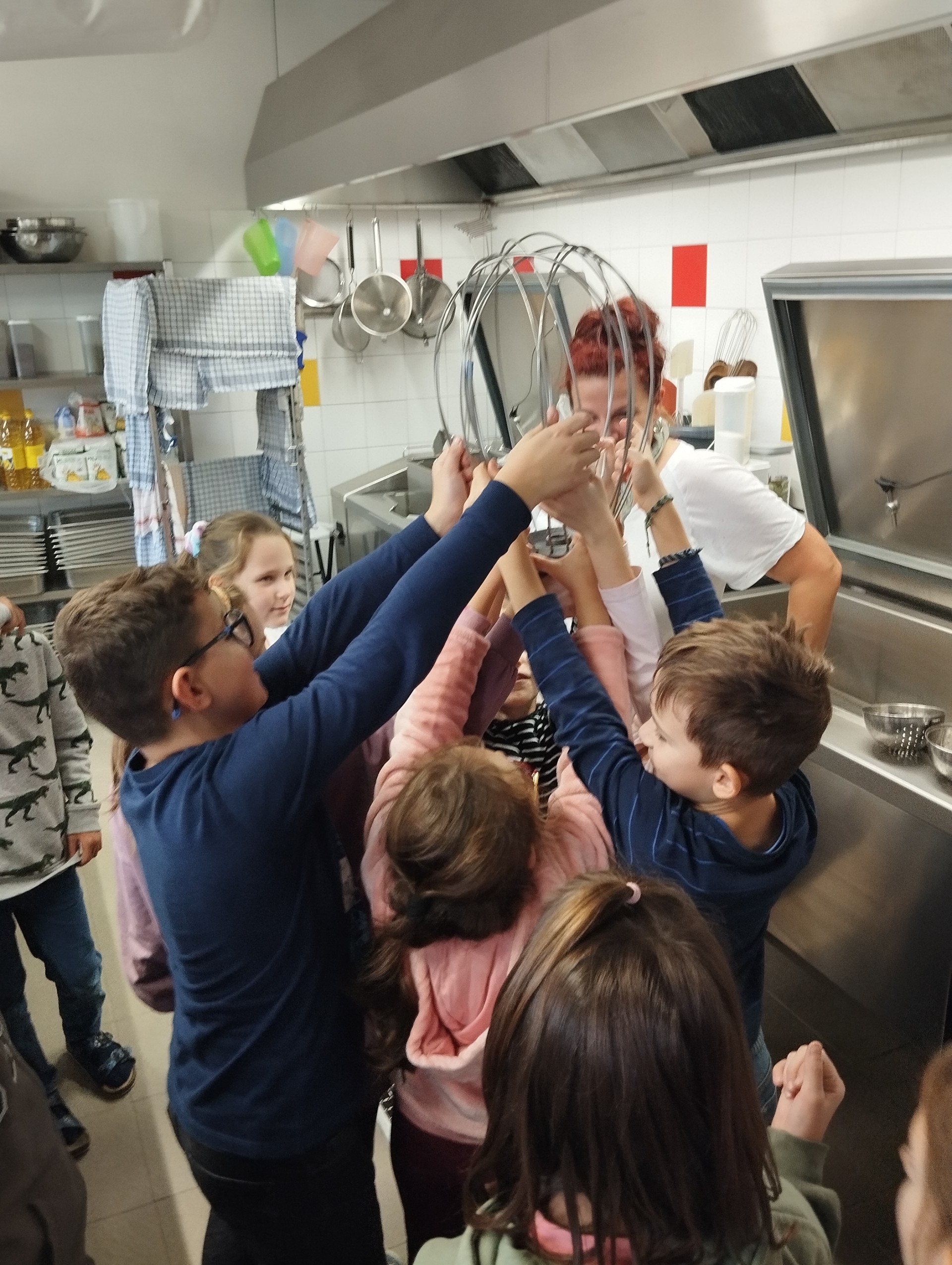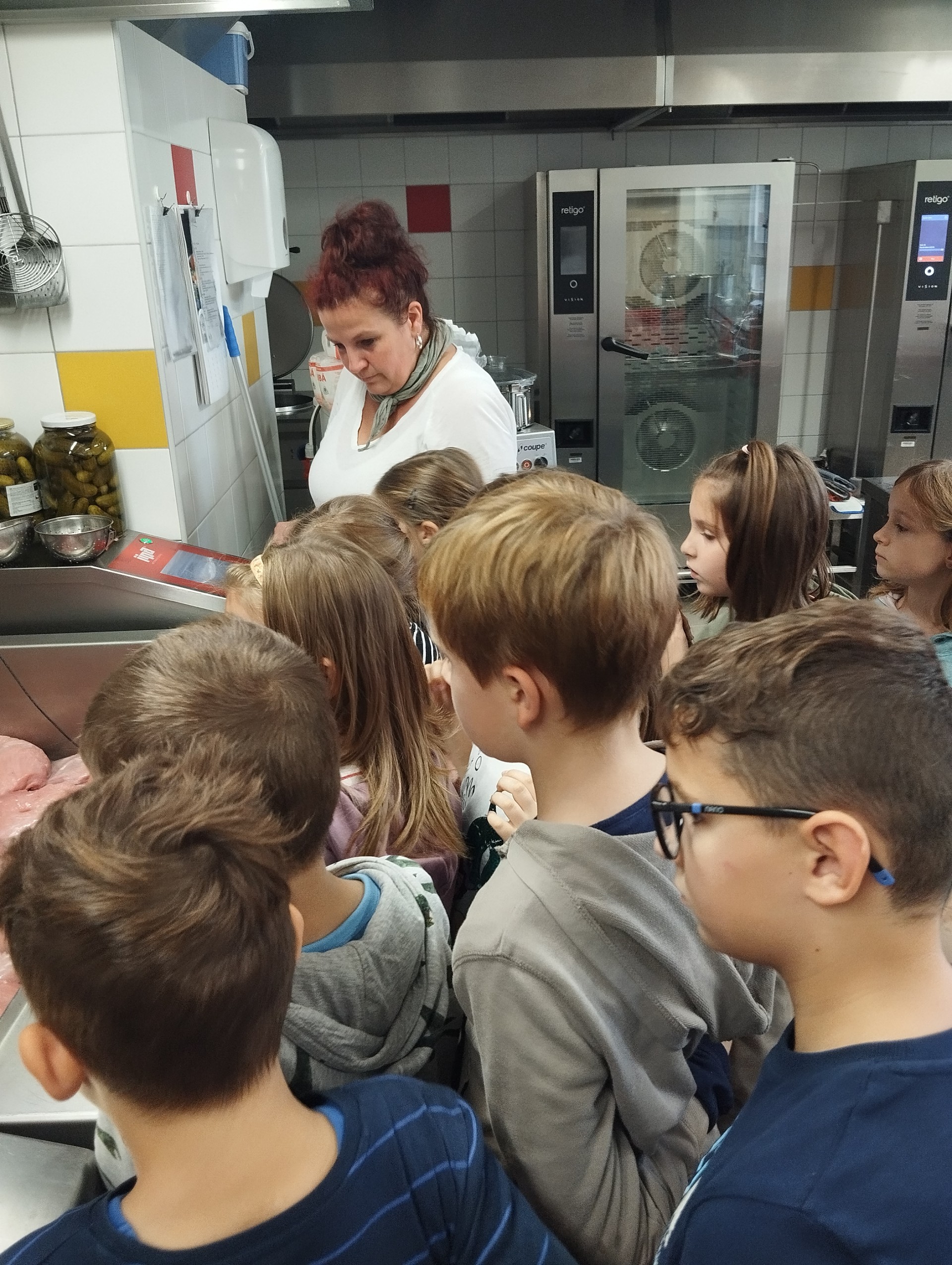 Minulý týden proběhla ukázková hodina školní jídelny a kuchyně za doprovodu paní kuchařky Natálky Kymlové. Děti z druhých tříd navštívily vnitřní  prostory kuchyně, kde mohly vidět nejen vybavení, ale i třeba velká balení jídla (např. těstoviny) nad kterými žasly, či přípravu základu pro Hamburskou smetanovou omáčku, z čehož měly veliký zážitek!