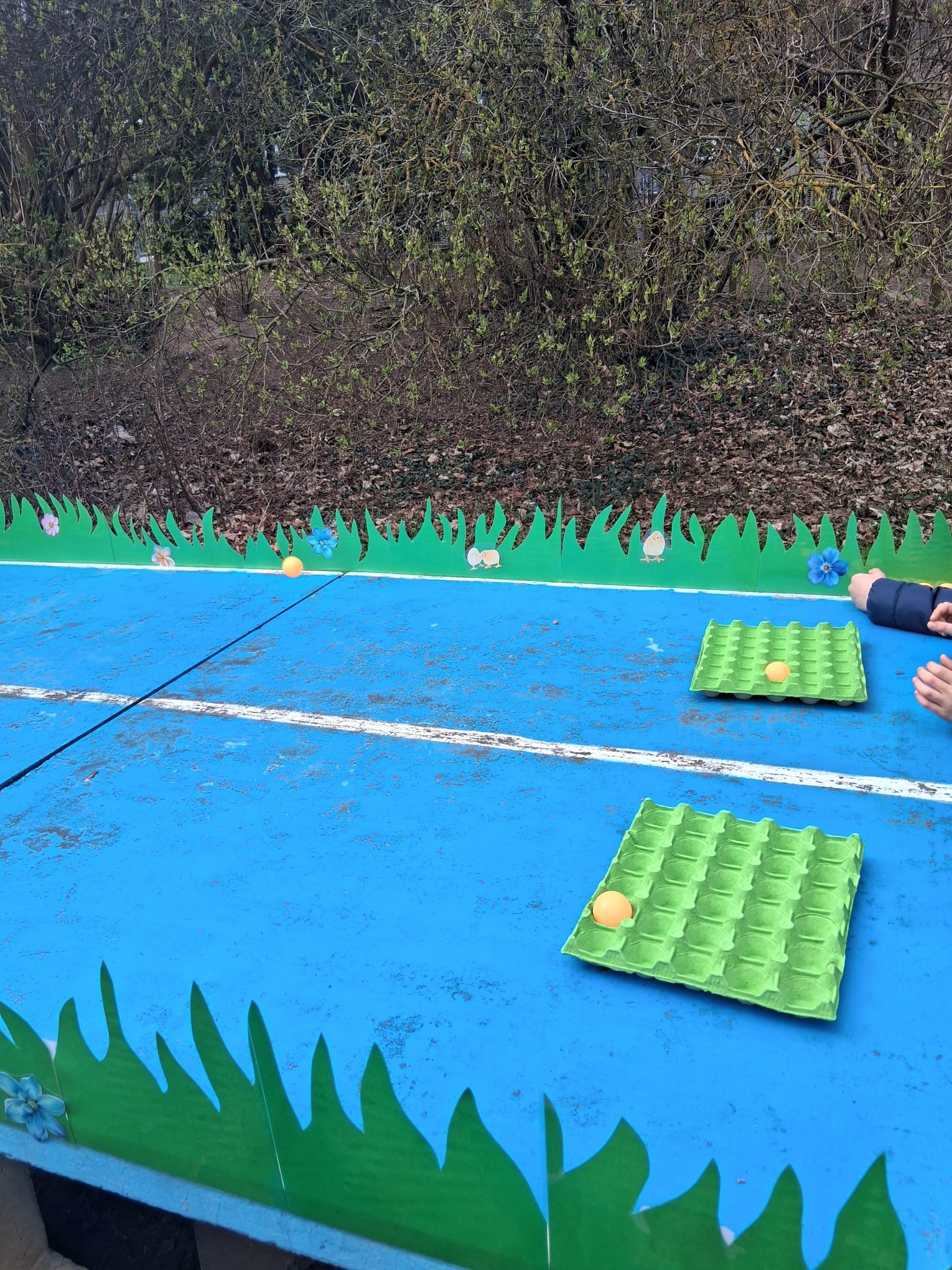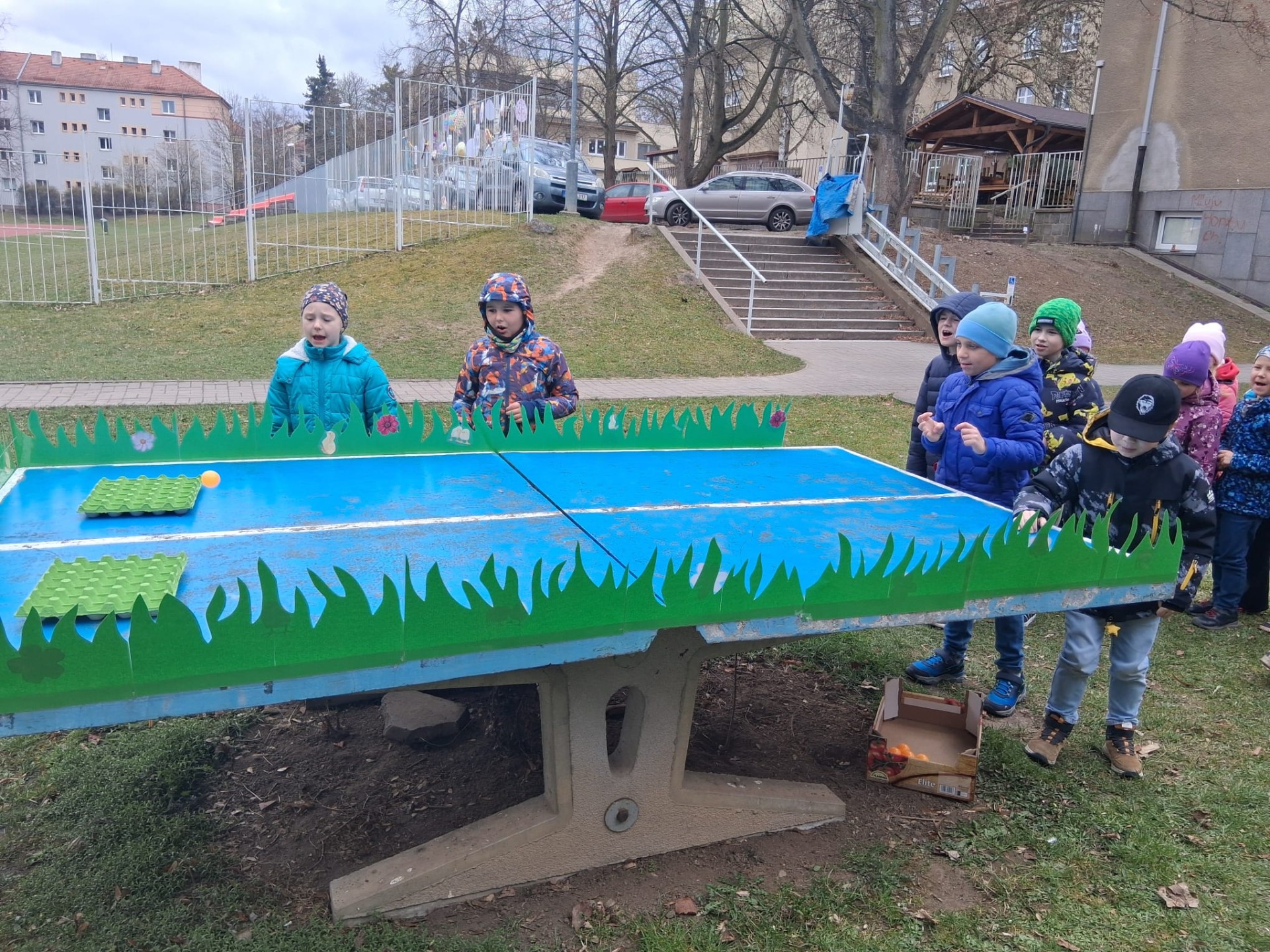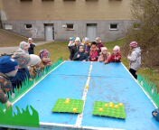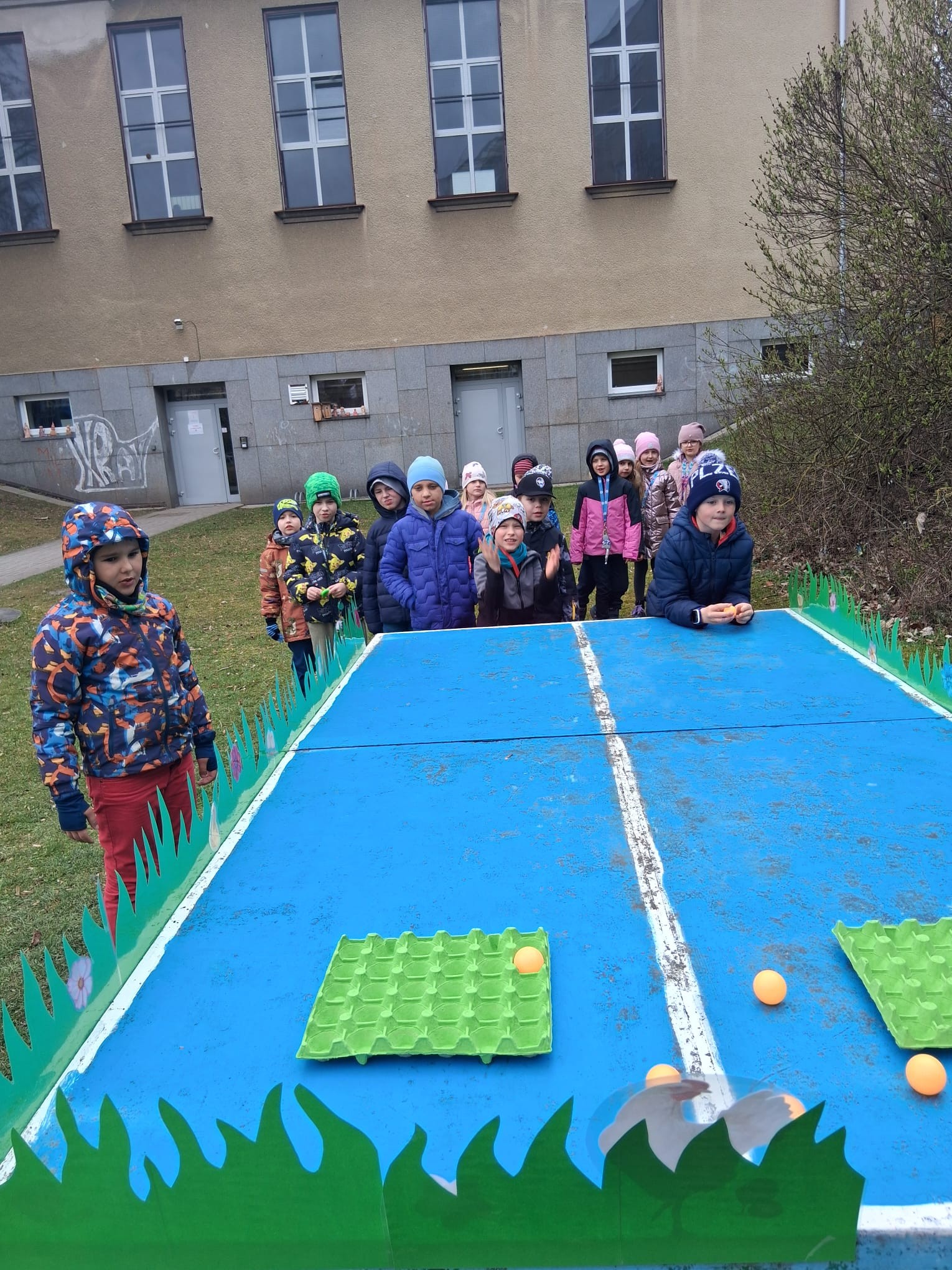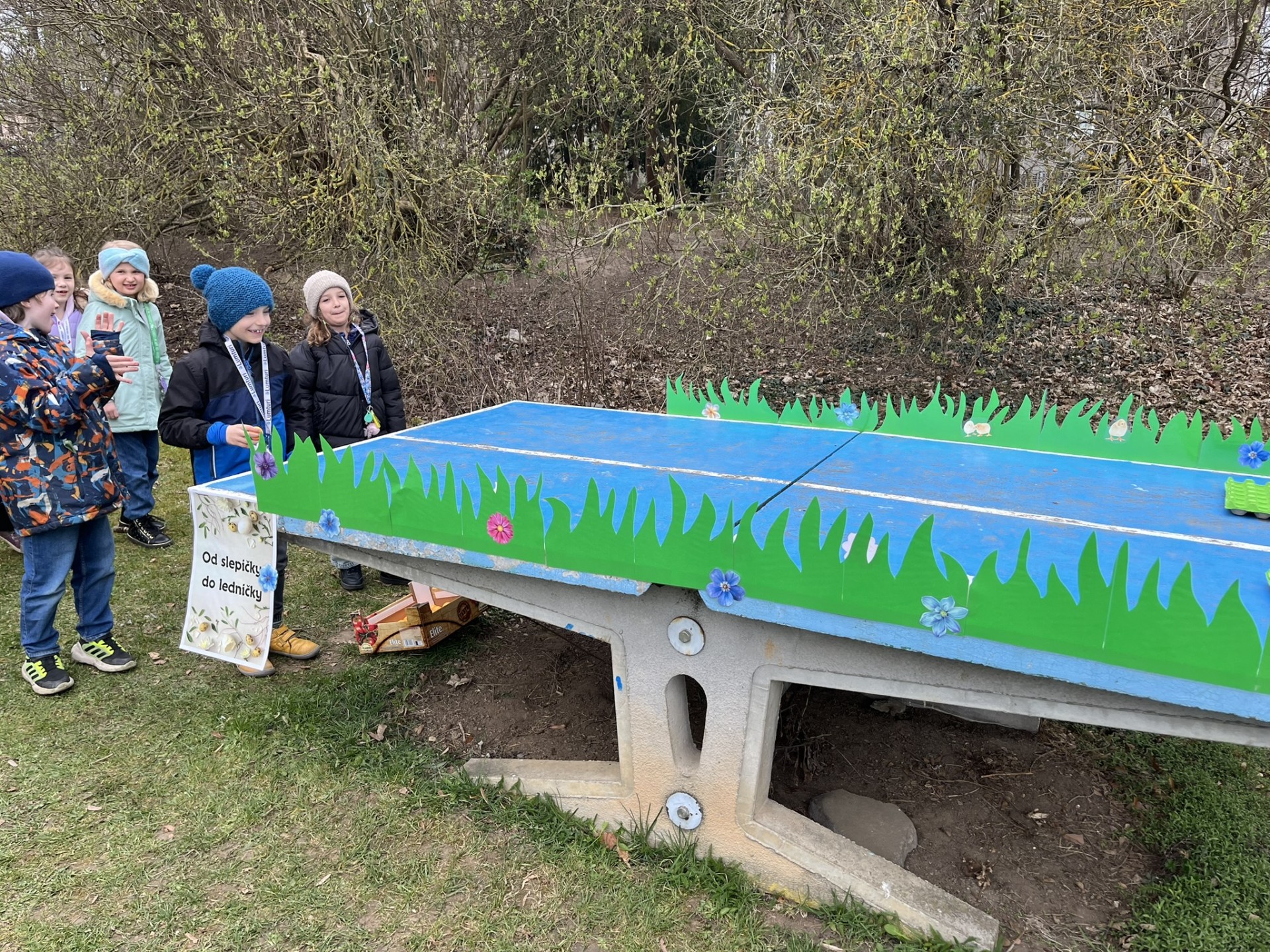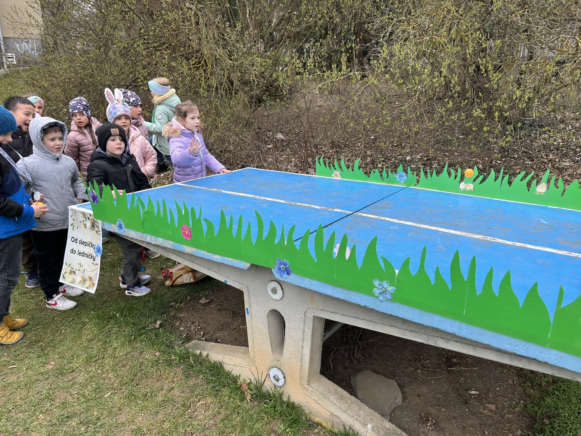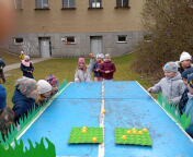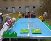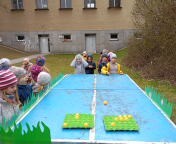 Nemenší nadšení děti ovšem projevily při plnění úkolů spojených s jarem a Velikonocemi. Jednou z aktivit byla netradiční „pingpongová“ hra s názvem Od slepičky do ledničky. Dále si děti vyzkoušely pletení pomlázky podle návodu, o pořádnou dávku smíchu se potom postaral pytlový závod na hřišti. Velký úspěch mělo také tvoření vlastního „travíka“. Děti si s nadšením vyráběly své originální postavičky a těšily se, až uvidí, jak se jim doma zazelenají. Dobrodružnou výzvou bylo také prolézání „pavučiny“, ve které děti sbíraly schované velikonoční kraslice. Děti všechny tyto aktivity absolvovaly společně, jako jedna parta, navzájem se povzbuzovaly, podporovaly, a pomáhaly si.