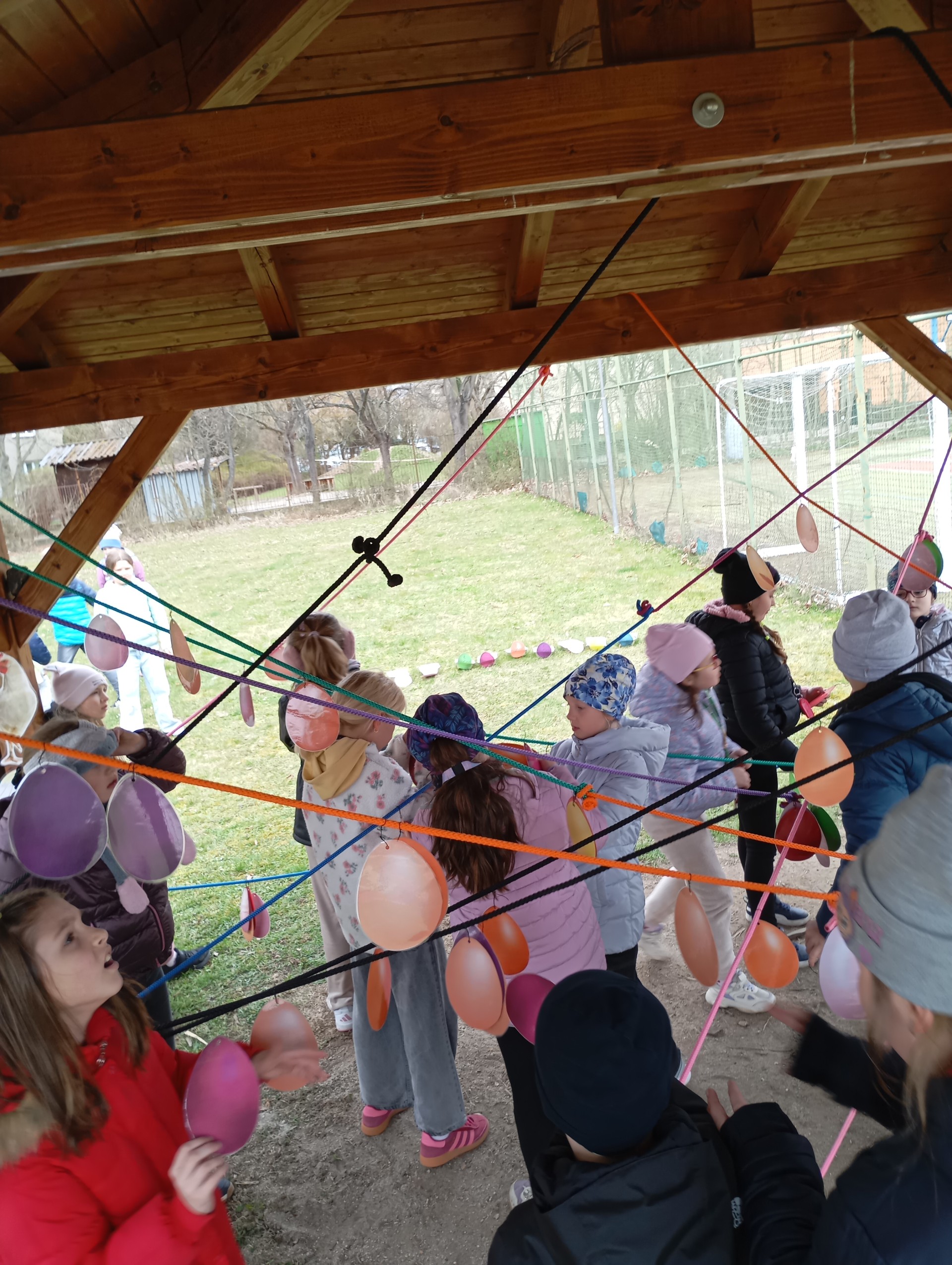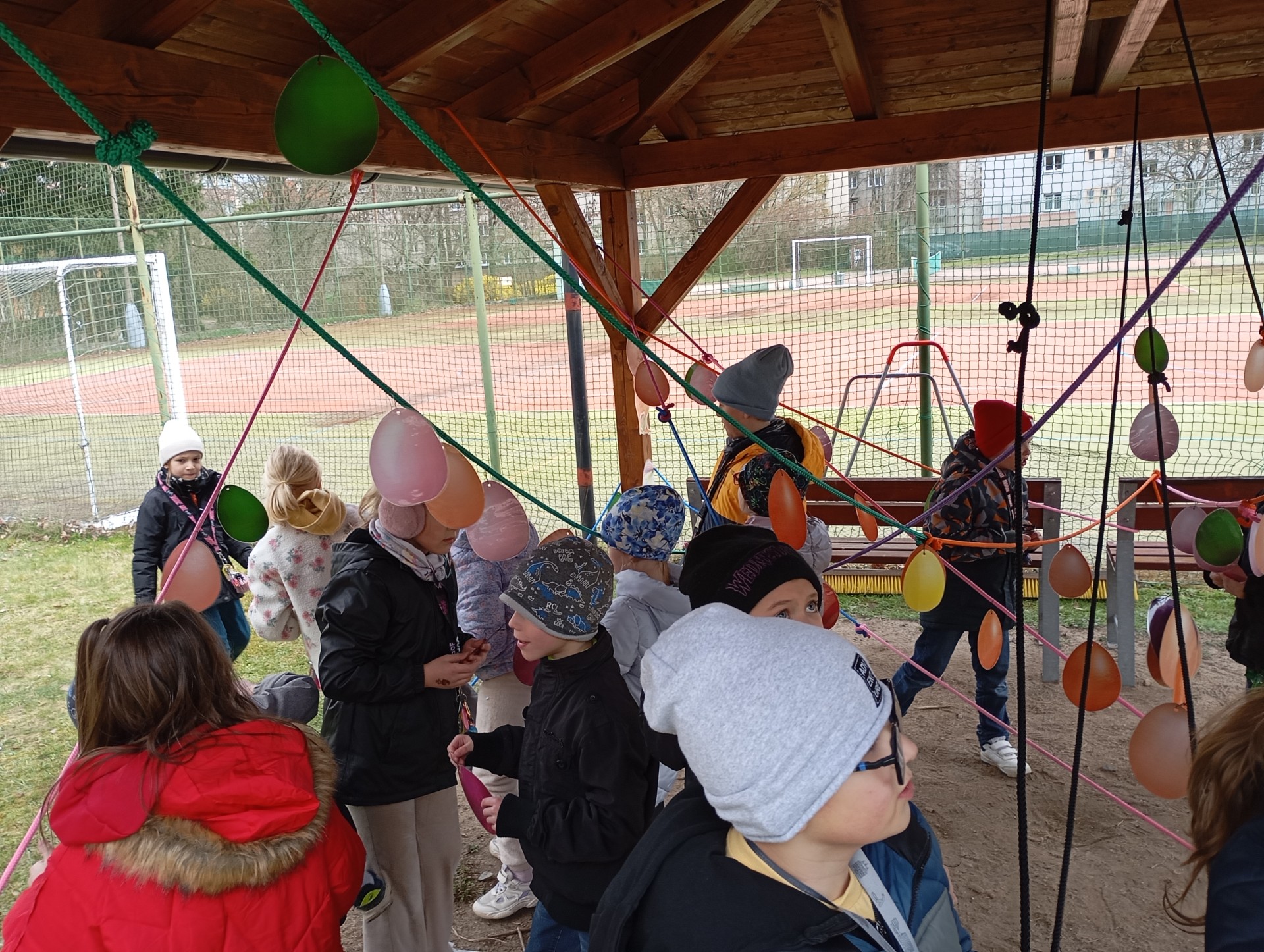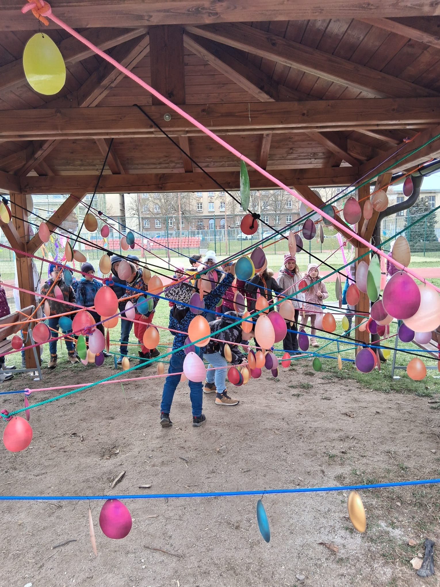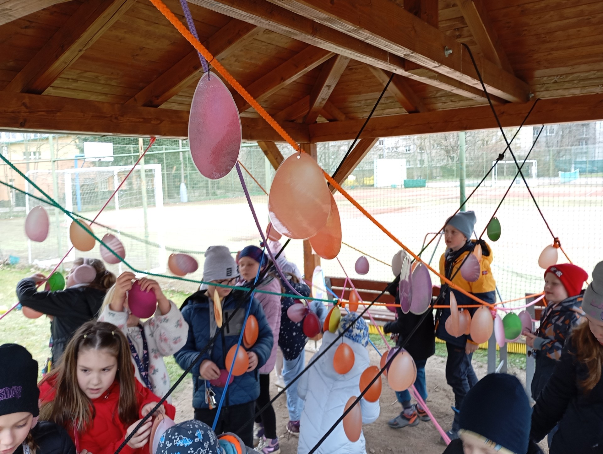 Nemenší nadšení děti ovšem projevily při plnění úkolů spojených s jarem a Velikonocemi. Jednou z aktivit byla netradiční „pingpongová“ hra s názvem Od slepičky do ledničky. Dále si děti vyzkoušely pletení pomlázky podle návodu, o pořádnou dávku smíchu se potom postaral pytlový závod na hřišti. Velký úspěch mělo také tvoření vlastního „travíka“. Děti si s nadšením vyráběly své originální postavičky a těšily se, až uvidí, jak se jim doma zazelenají. Dobrodružnou výzvou bylo také prolézání „pavučiny“, ve které děti sbíraly schované velikonoční kraslice. Děti všechny tyto aktivity absolvovaly společně, jako jedna parta, navzájem se povzbuzovaly, podporovaly, a pomáhaly si.