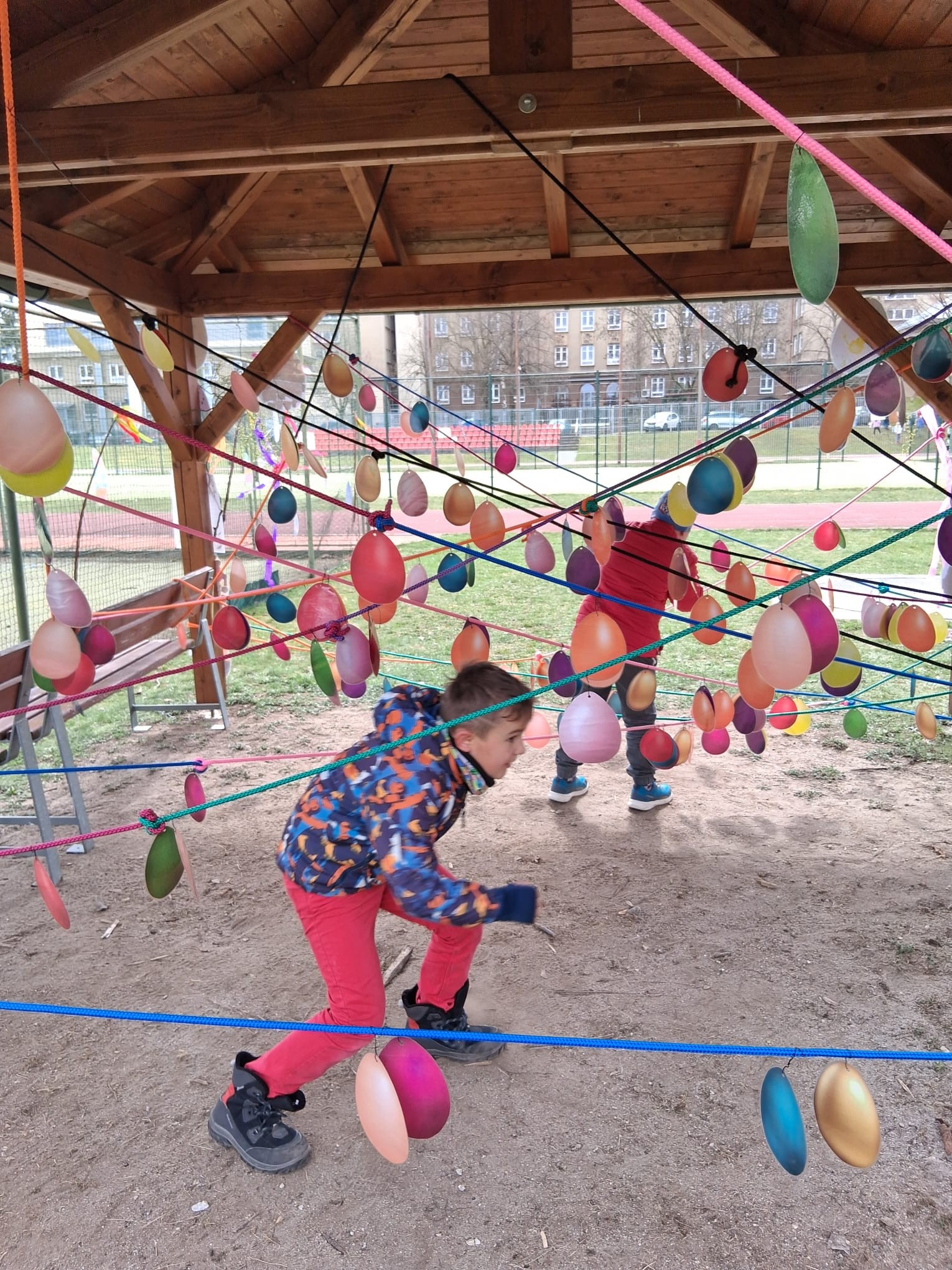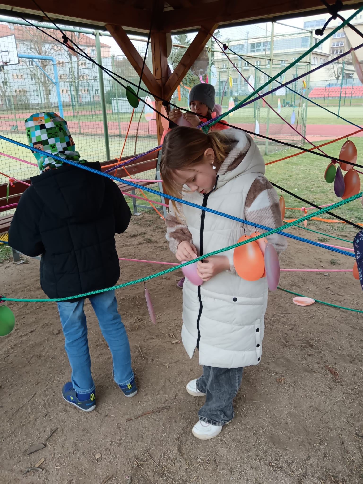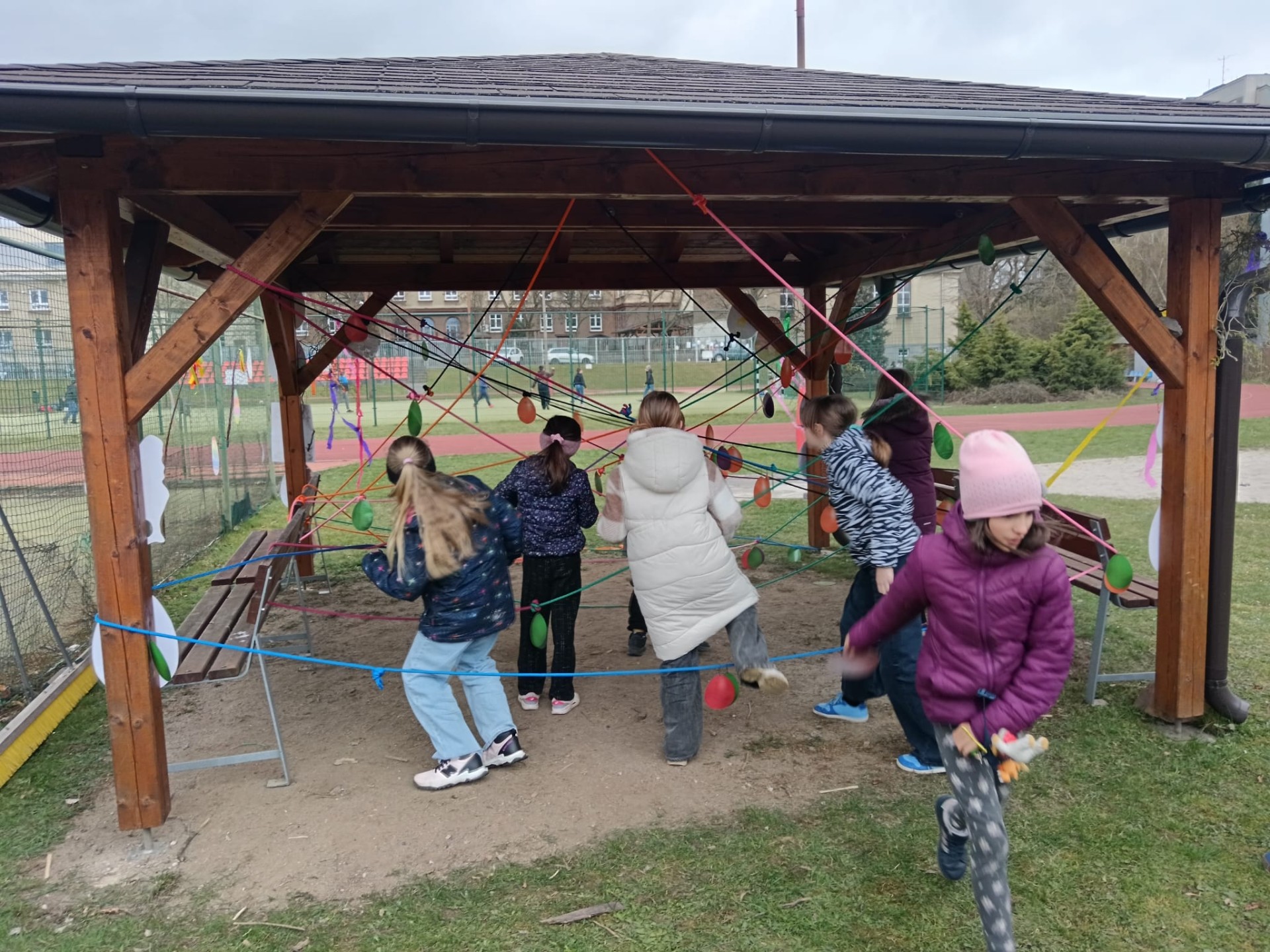 Nemenší nadšení děti ovšem projevily při plnění úkolů spojených s jarem a Velikonocemi. Jednou z aktivit byla netradiční „pingpongová“ hra s názvem Od slepičky do ledničky. Dále si děti vyzkoušely pletení pomlázky podle návodu, o pořádnou dávku smíchu se potom postaral pytlový závod na hřišti. Velký úspěch mělo také tvoření vlastního „travíka“. Děti si s nadšením vyráběly své originální postavičky a těšily se, až uvidí, jak se jim doma zazelenají. Dobrodružnou výzvou bylo také prolézání „pavučiny“, ve které děti sbíraly schované velikonoční kraslice. Děti všechny tyto aktivity absolvovaly společně, jako jedna parta, navzájem se povzbuzovaly, podporovaly, a pomáhaly si.