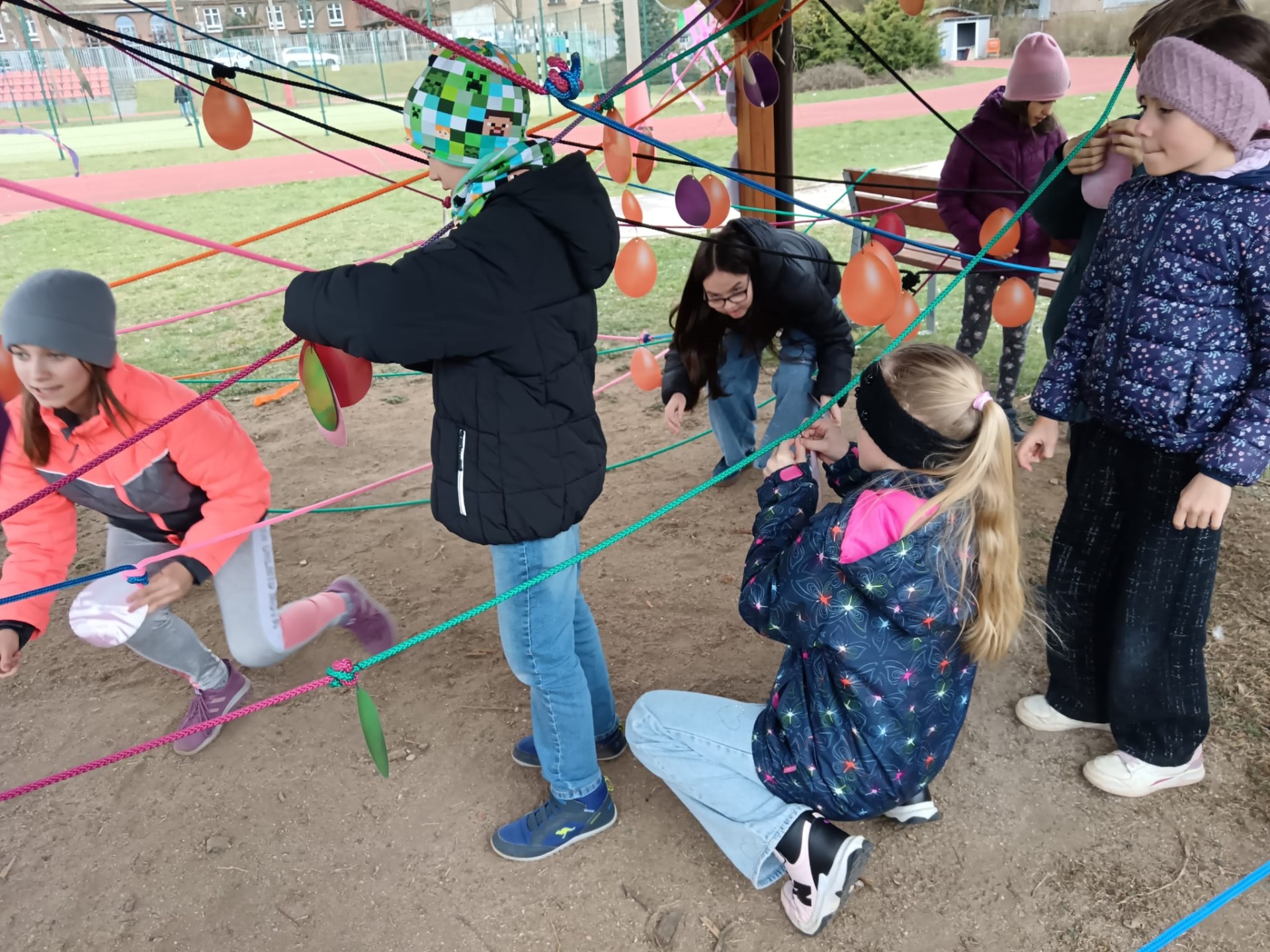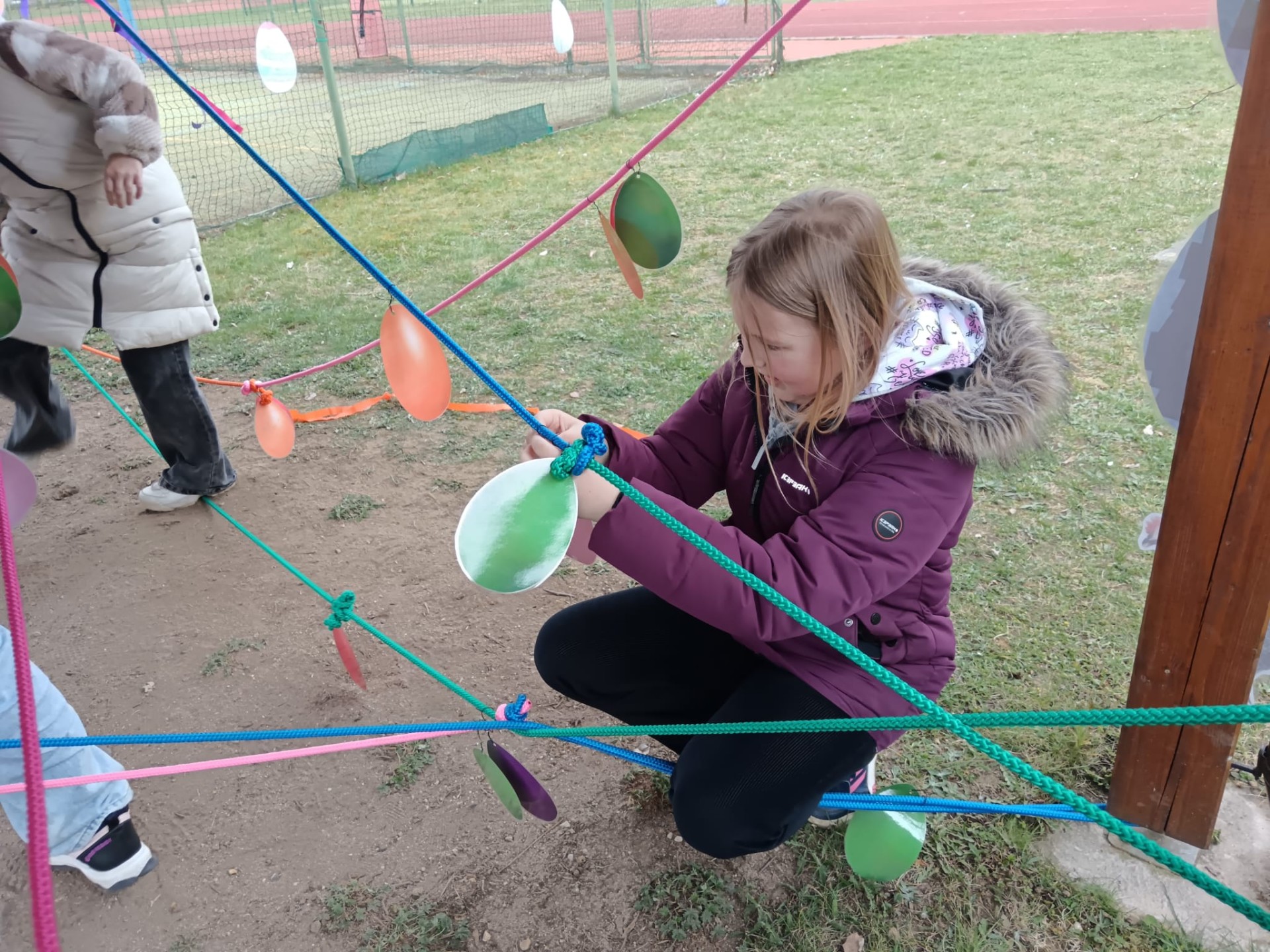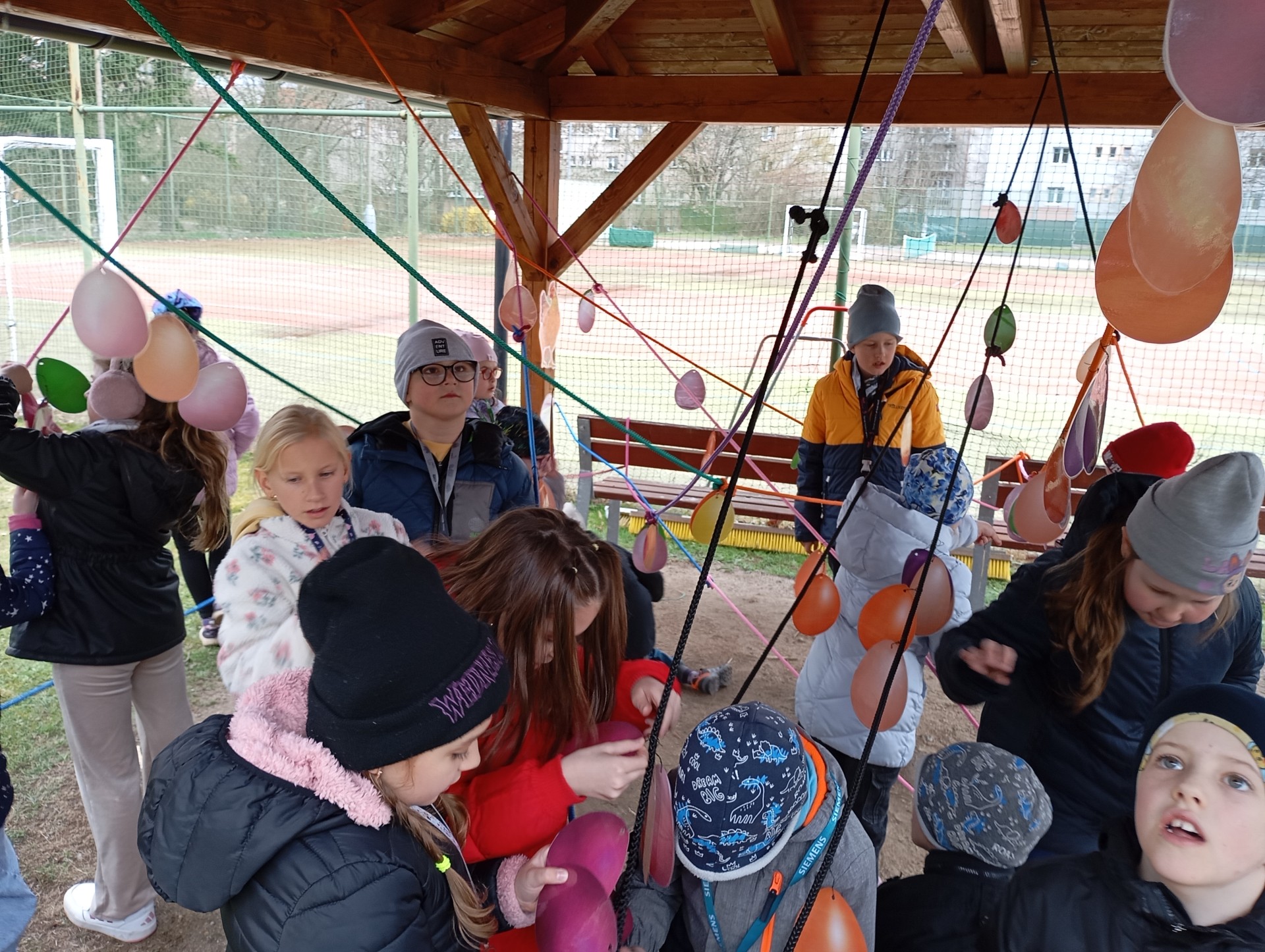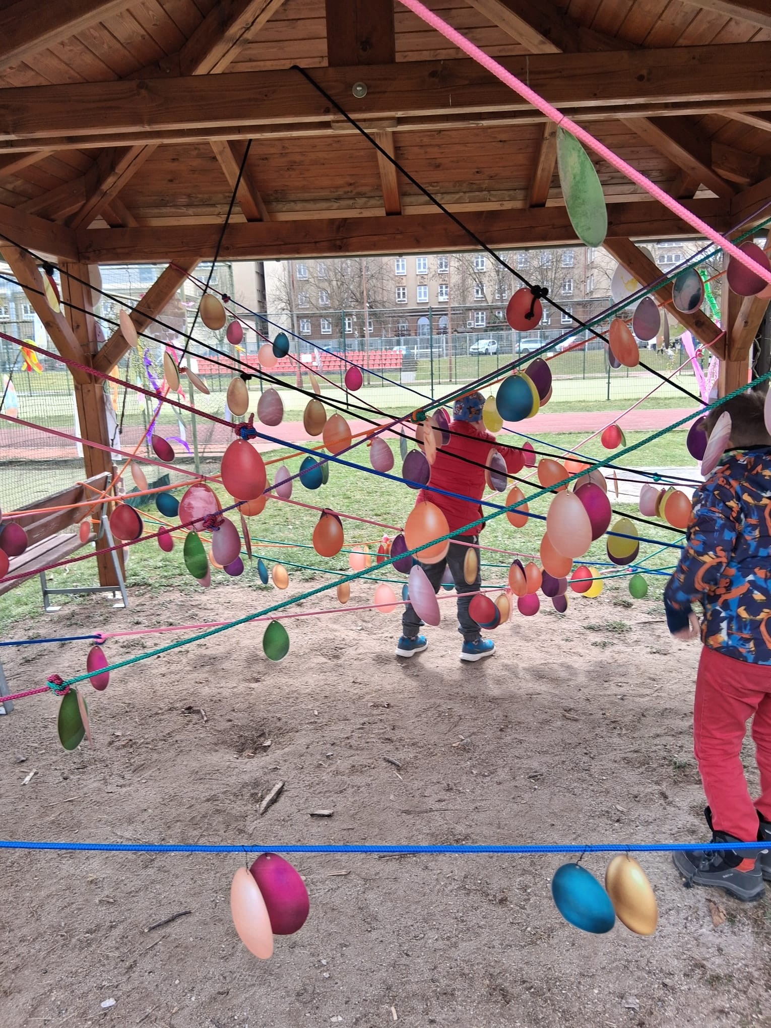 Nemenší nadšení děti ovšem projevily při plnění úkolů spojených s jarem a Velikonocemi. Jednou z aktivit byla netradiční „pingpongová“ hra s názvem Od slepičky do ledničky. Dále si děti vyzkoušely pletení pomlázky podle návodu, o pořádnou dávku smíchu se potom postaral pytlový závod na hřišti. Velký úspěch mělo také tvoření vlastního „travíka“. Děti si s nadšením vyráběly své originální postavičky a těšily se, až uvidí, jak se jim doma zazelenají. Dobrodružnou výzvou bylo také prolézání „pavučiny“, ve které děti sbíraly schované velikonoční kraslice. Děti všechny tyto aktivity absolvovaly společně, jako jedna parta, navzájem se povzbuzovaly, podporovaly, a pomáhaly si.