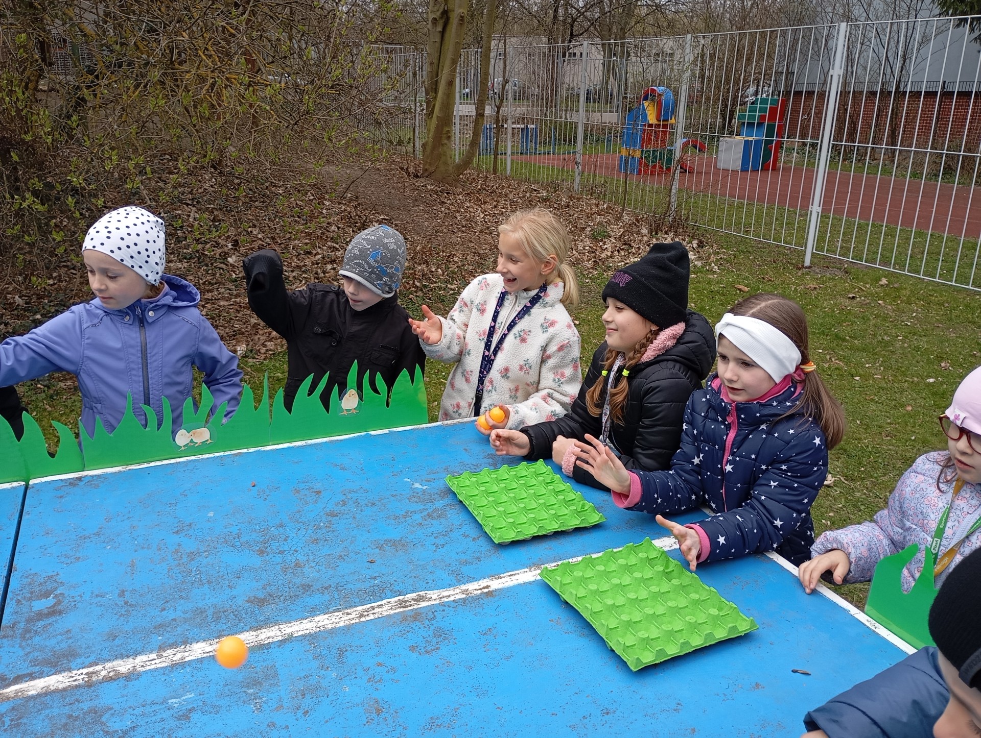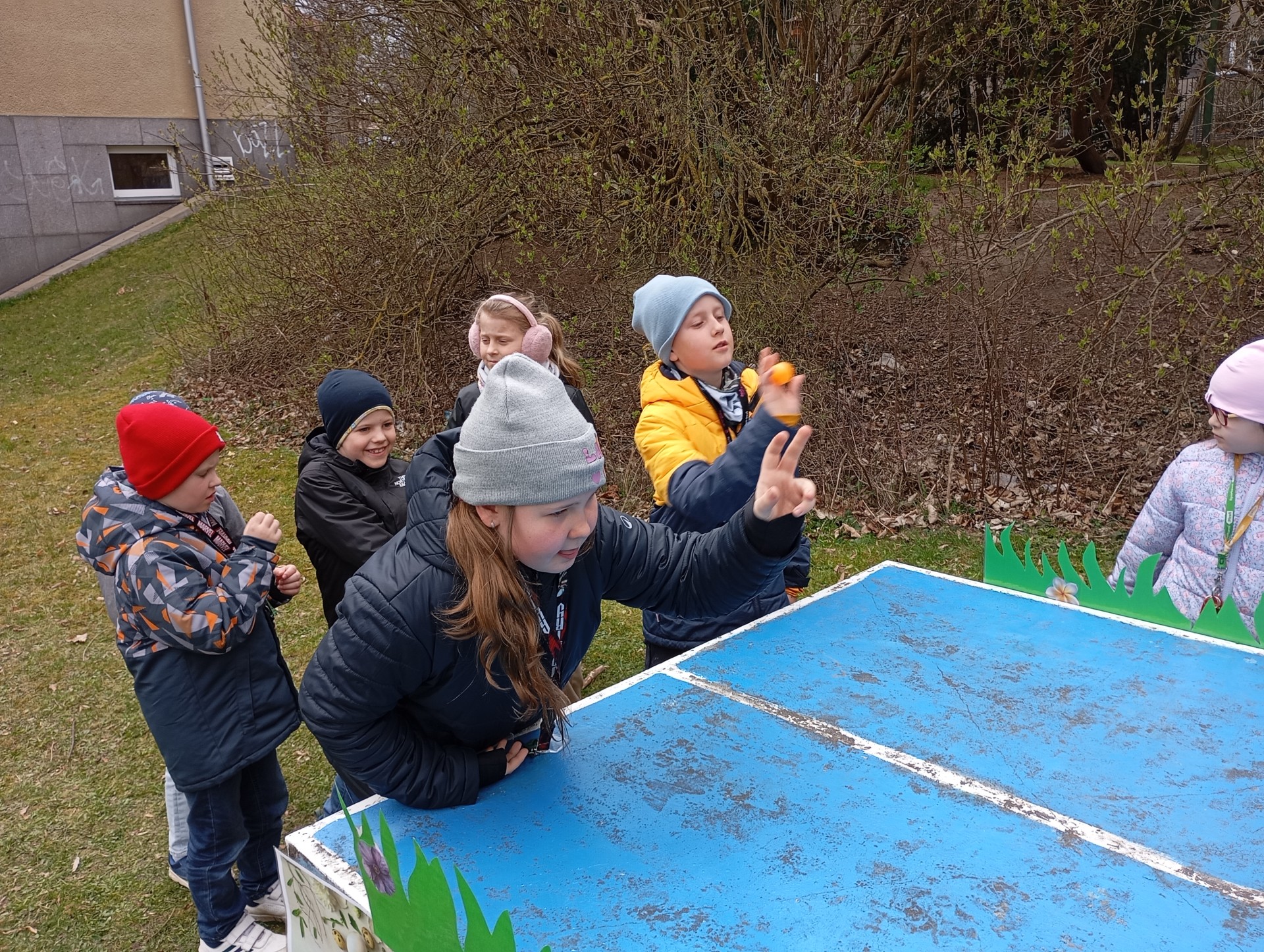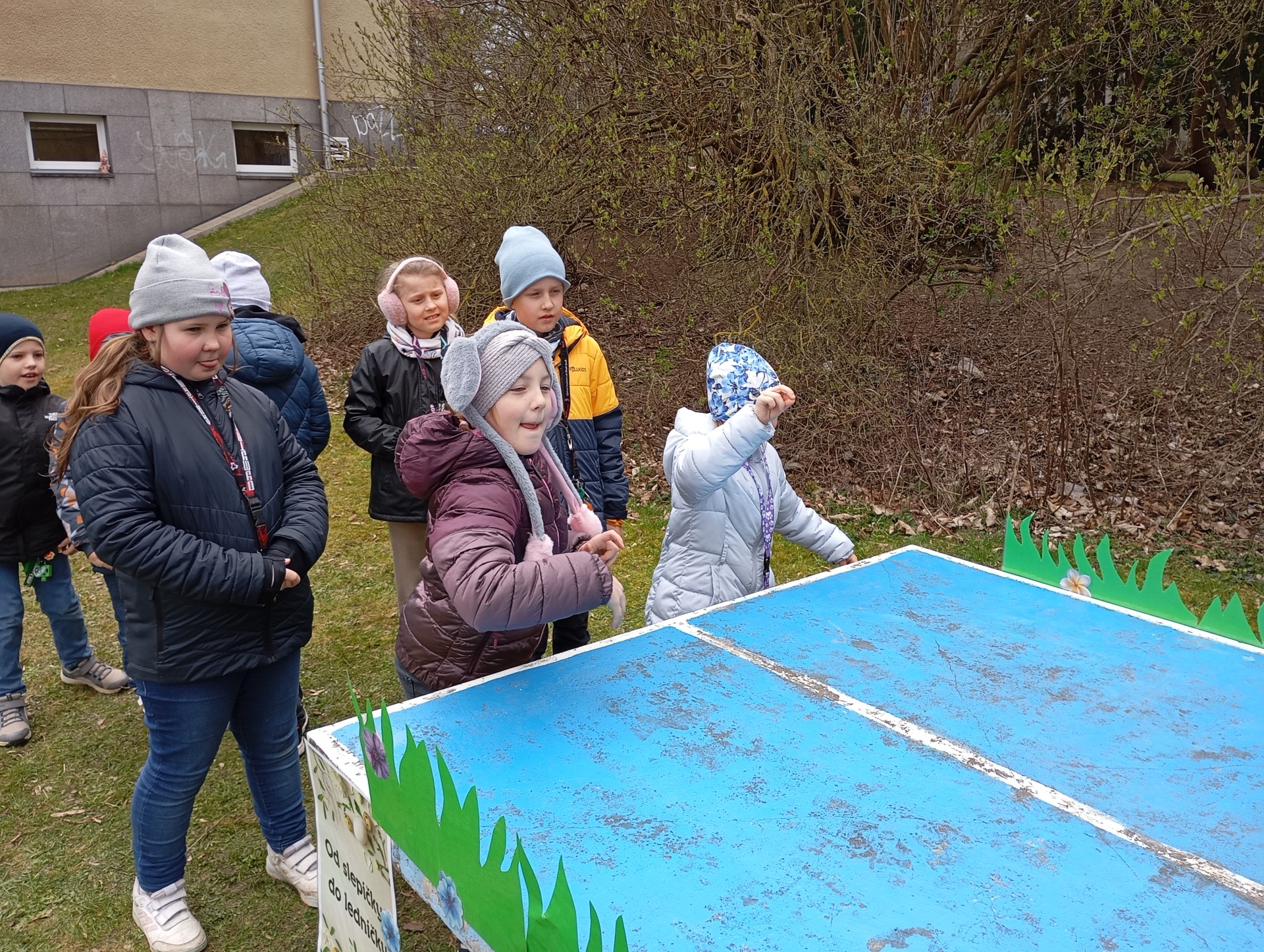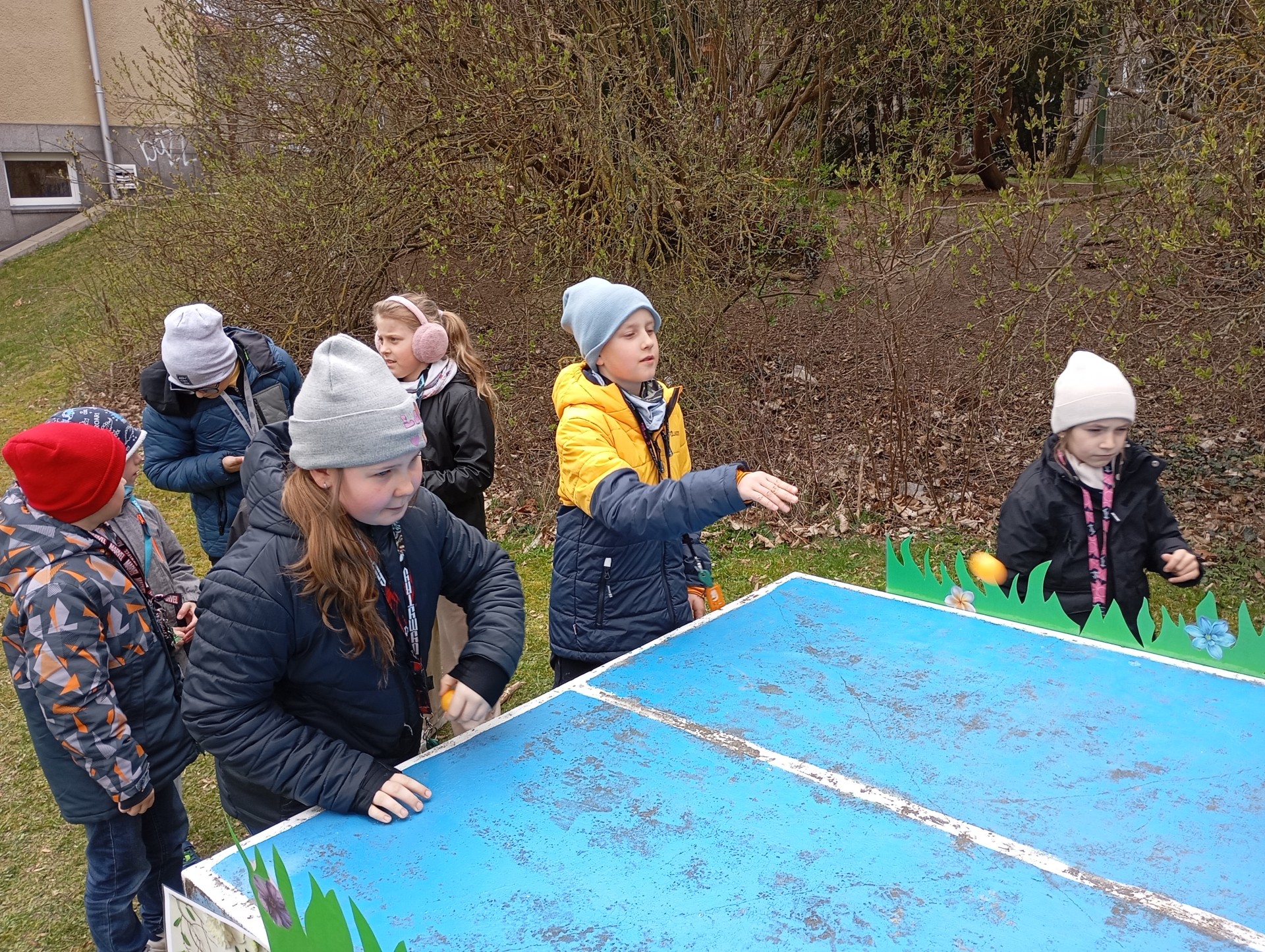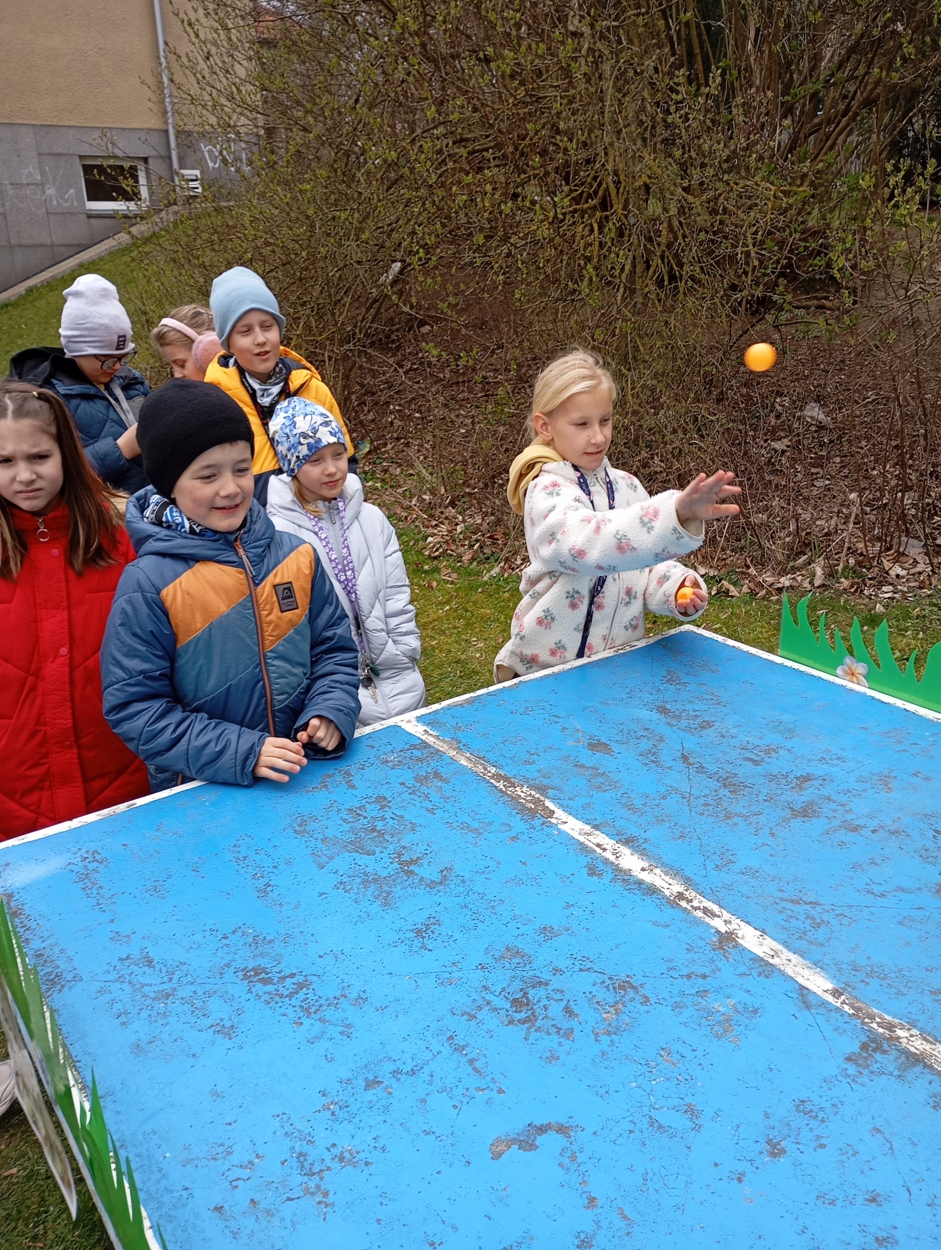 Nemenší nadšení děti ovšem projevily při plnění úkolů spojených s jarem a Velikonocemi. Jednou z aktivit byla netradiční „pingpongová“ hra s názvem Od slepičky do ledničky. Dále si děti vyzkoušely pletení pomlázky podle návodu, o pořádnou dávku smíchu se potom postaral pytlový závod na hřišti. Velký úspěch mělo také tvoření vlastního „travíka“. Děti si s nadšením vyráběly své originální postavičky a těšily se, až uvidí, jak se jim doma zazelenají. Dobrodružnou výzvou bylo také prolézání „pavučiny“, ve které děti sbíraly schované velikonoční kraslice. Děti všechny tyto aktivity absolvovaly společně, jako jedna parta, navzájem se povzbuzovaly, podporovaly, a pomáhaly si.