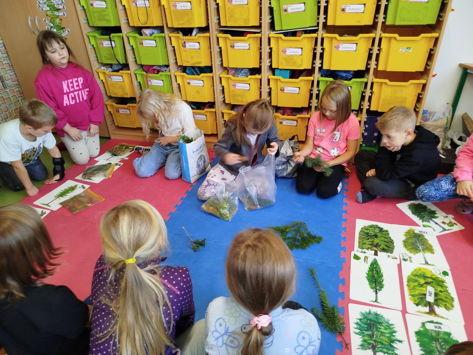 Poznávali různé druhy listů, jehličí a šišek, učili se je rozlišovat a pojmenovávat.