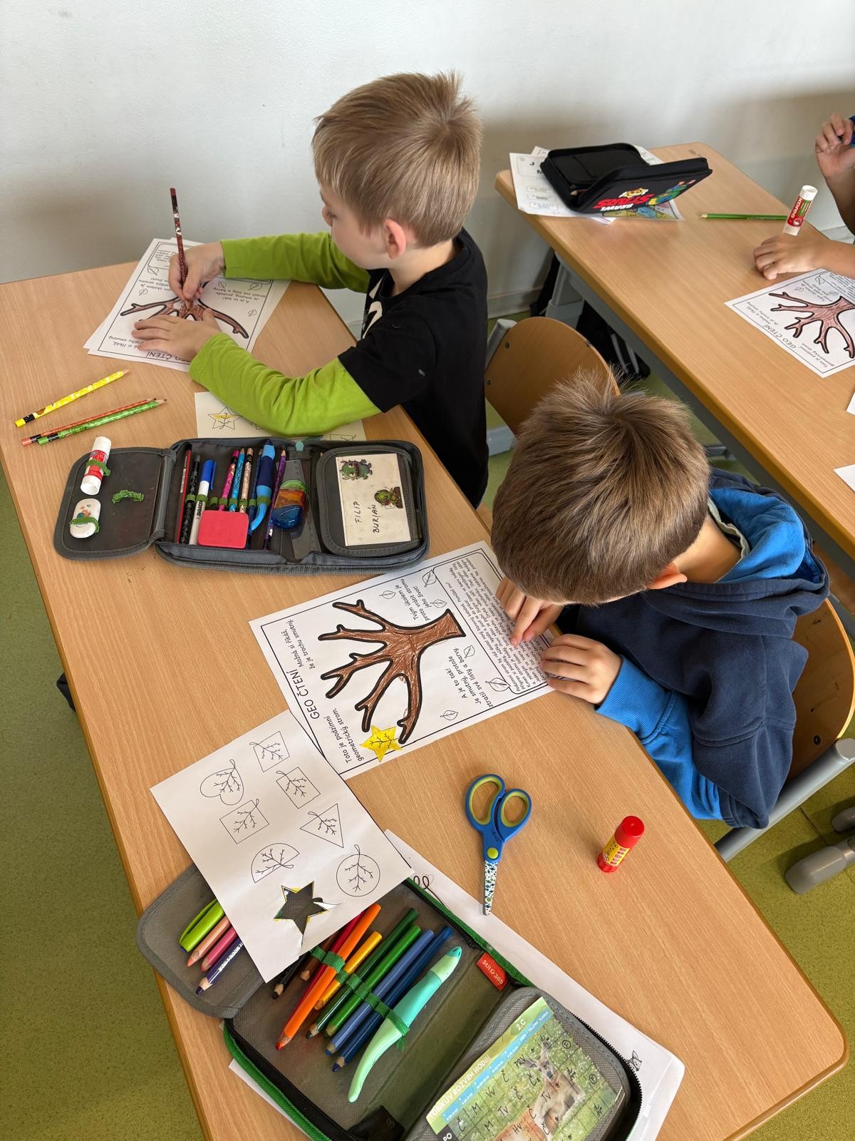 Na závěr si každý vyrobil vlastní „geo-strom“ – originální strom složený z geometrických tvarů.