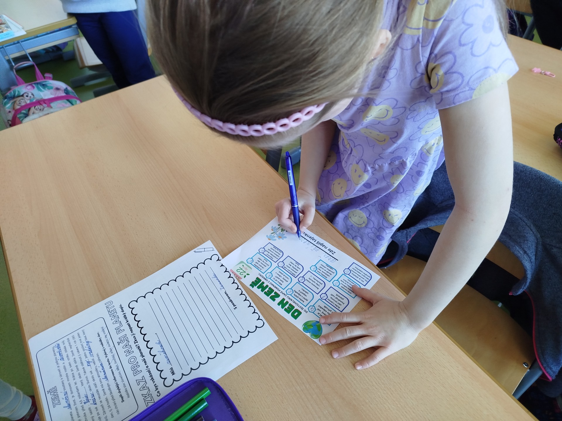 V hodinách českého jazyka se děti dozvěděly, proč Den Země slavíme, kdo ho založil a jaké myšlenky stojí za jeho vznikem. Společně hledaly způsoby, jak mohou přírodu chránit.