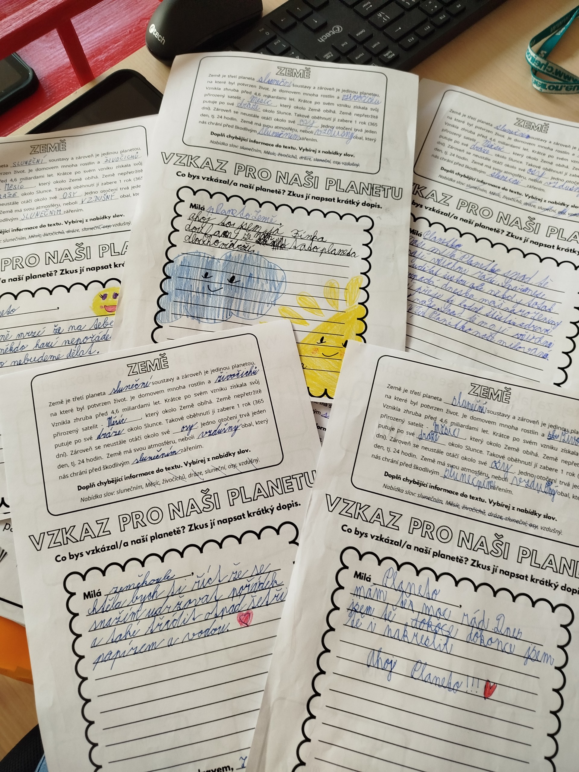Na závěr každý žák napsal Zemi osobní vzkaz – přání, poděkování nebo slib, jak se bude o naši planetu starat.